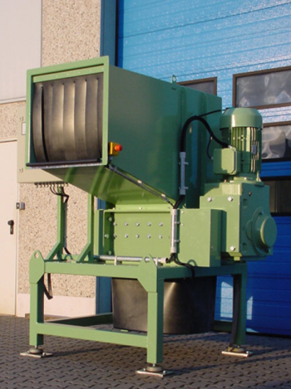 El funcionamiento de este triturador comienza por la introducción del material de manera manual en su boca de entrada, este material cae hacia las cuchillas que giran con fuerza gracias a su motor eléctrico de entre 11kW y 22 kW.