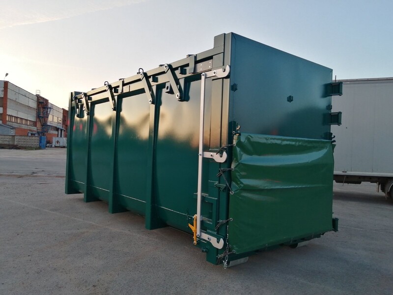 El contenedor de compactación ECOPRESS está diseñado para su uso con compactadores estacionarios ESC o ETS para comprimir cartón, papel de aluminio y residuos municipales secos o semisecos, lo que reduce el volumen de residuos almacenados y los costos de transporte. A diferencia de los compactadores móviles, donde el proceso de operación se suspende durante el tiempo de vaciado del contenedor, el sistema de compactadores estacionarios permite organizar un proceso continuo de compresión de residuos. La suspensión del proceso de operación del compactador estacionario ocurre solo durante el cambio de contenedores.