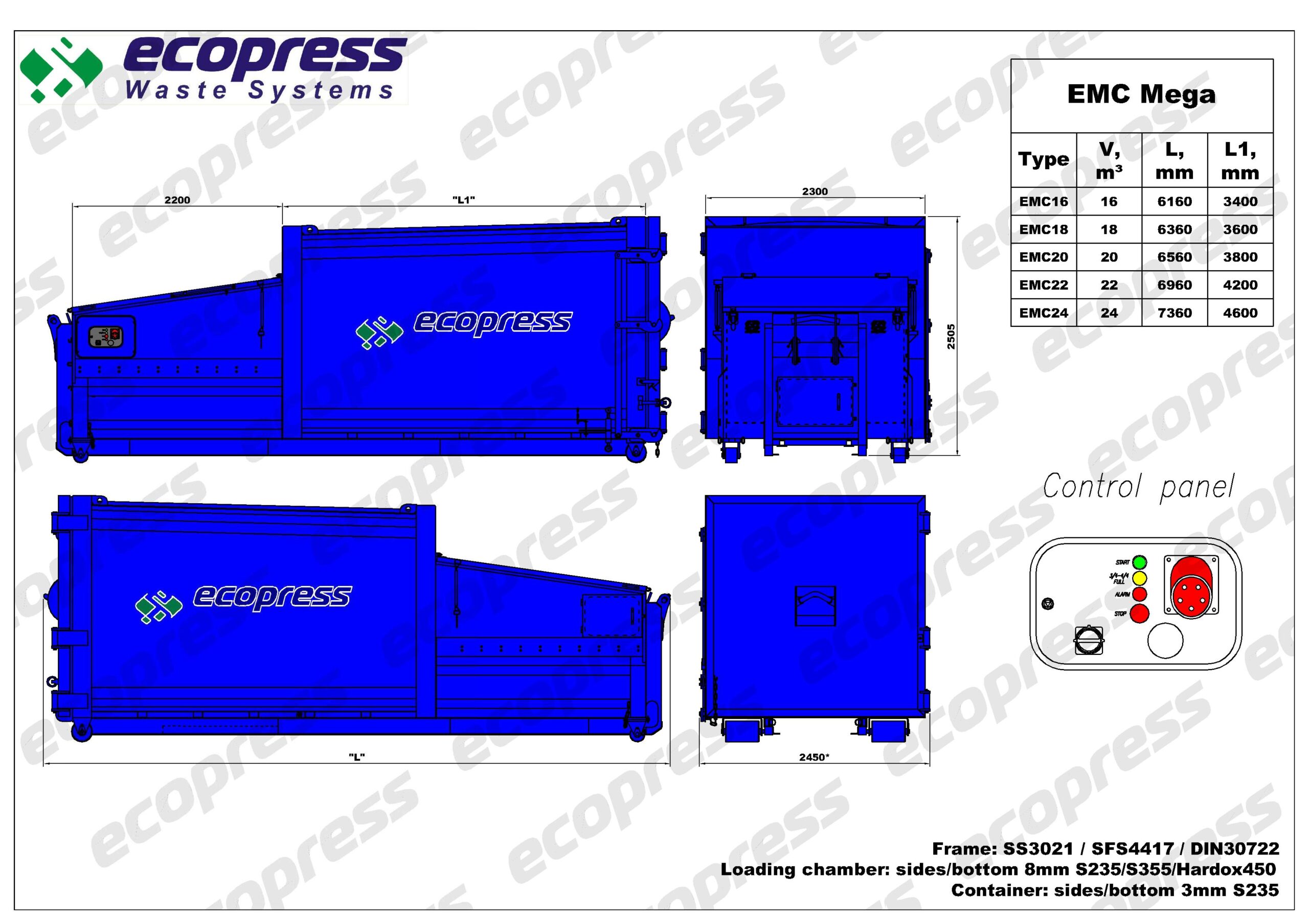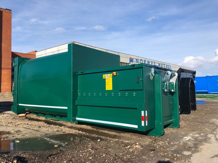 El EMC MEGA está diseñado para reducir el cartón de mayor tamaño y otros materiales. Debido a la mayor distancia de movimiento de la placa de compactación, esta máquina es altamente efectiva en la compactación de piezas más grandes. La capacidad máxima de transporte es de 24 m³ en relación con la longitud limitada de los vehículos de recogida con gancho. Es adecuado para operar en todas las condiciones climáticas, a temperaturas que oscilan entre -50 °C y +50 °C, con un bajo nivel de ruido. El sistema de compactación se controla mediante sensores de presión, sin sensores mecánicos que puedan causar mal funcionamiento durante la operación. La máquina está equipada con sensores de protección para el nivel de aceite y el sobrecalentamiento. El módulo de telemetría incorporado admite la conexión en línea las 24 horas, y emite señales por correo electrónico y SMS, así como avisos para volver a programar o requerir servicio.