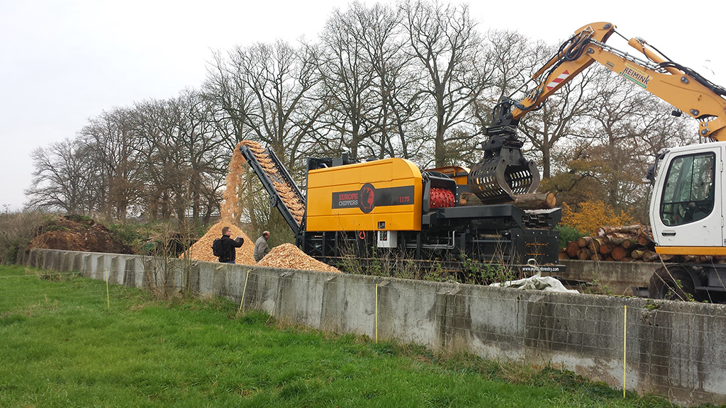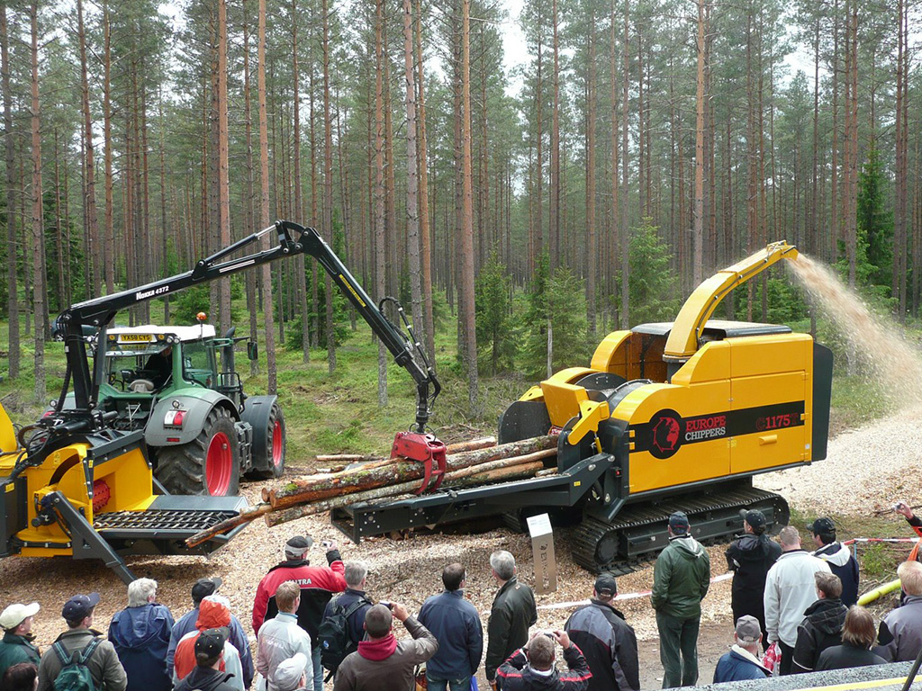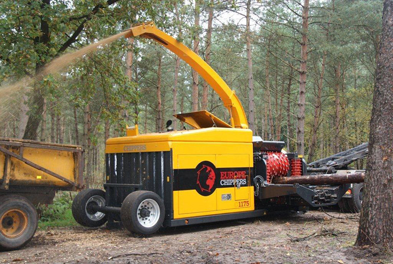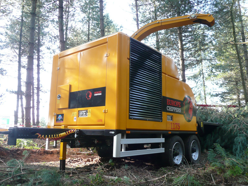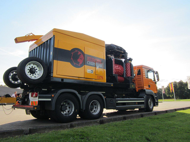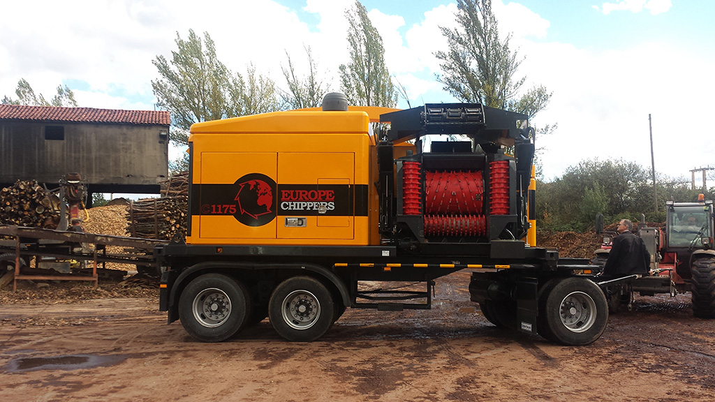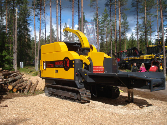 El modelo C-1175, es la astilladora de Europe Chippers más potente de su gama. Sus motores van desde los 500 hasta los 700 CV de potencia en versión diesel Caterpillar, y entre 250 kW y 310 kw en su versión eléctrica con una producción aproximada de 200 m3/h. Por tanto esta astilladora está pensada para triturar una gran cantidad de troncos forestales de hasta 60 centímetros de diámetro.