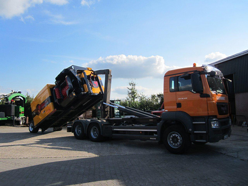 Dispone de varios extras, entre los más destacado sería la grúa pulpo con pinzas, que permite introducir el material de una manera mucho más fácil y de manera progresiva.