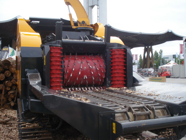 En definitiva esta astilladora de grandes dimensiones, está pensada para triturar gran cantidad de troncos forestales de hasta 60 cm, obteniendo en pocos segundos chips de madera profesional de unos 50 ó 70 mm.
