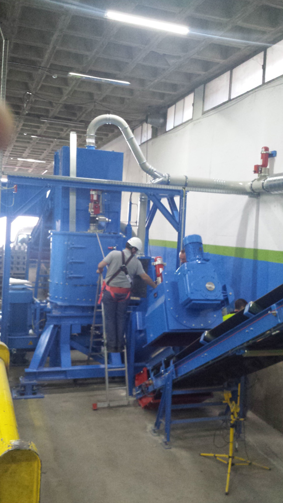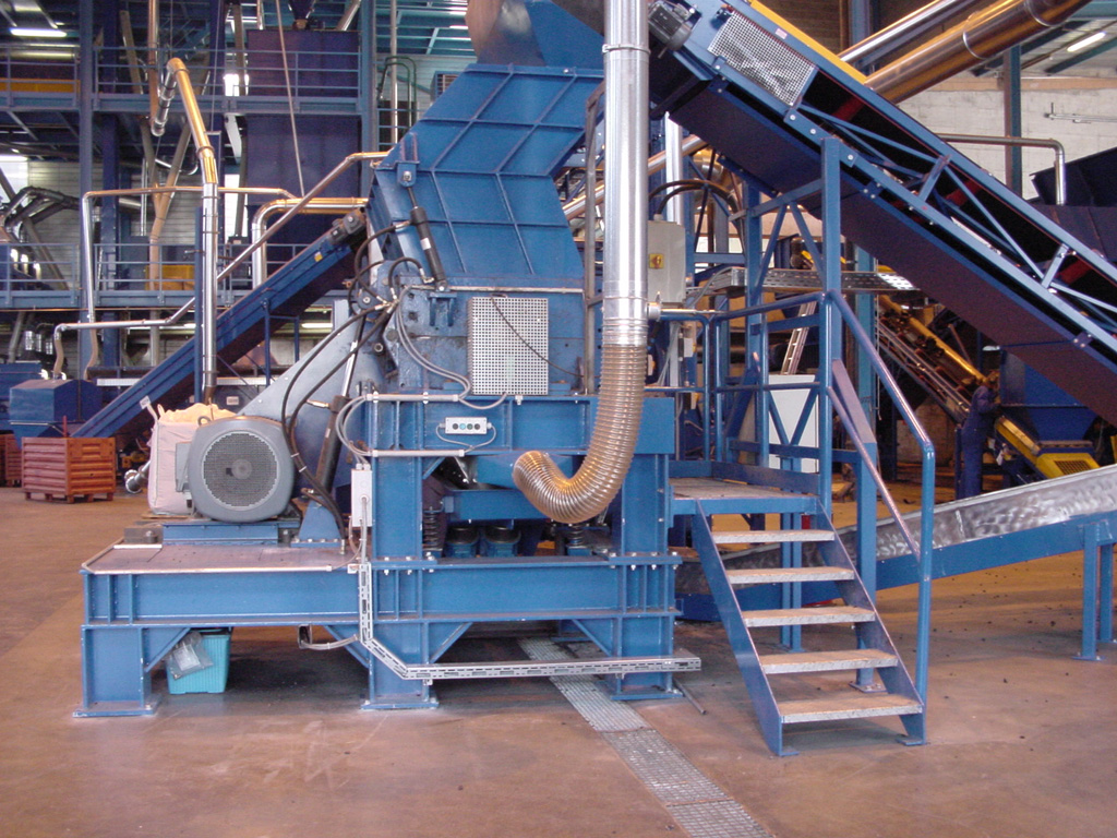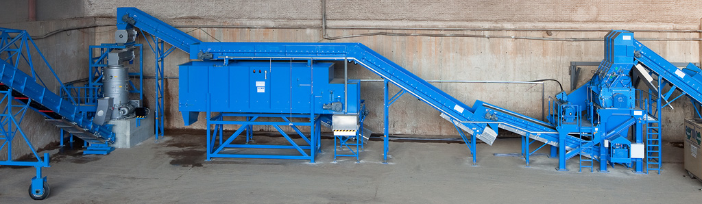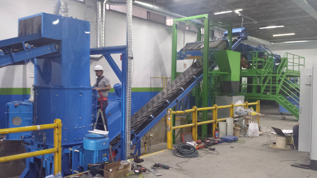 Planta de Reciclaje para la línea base de tratamiento de Equipos Eléctrico y Electrónicos (RAEES) formada por una línea de trituración con Separación magnética e inductiva y triaje y complementada con una línea para la Separación Densimétrica.